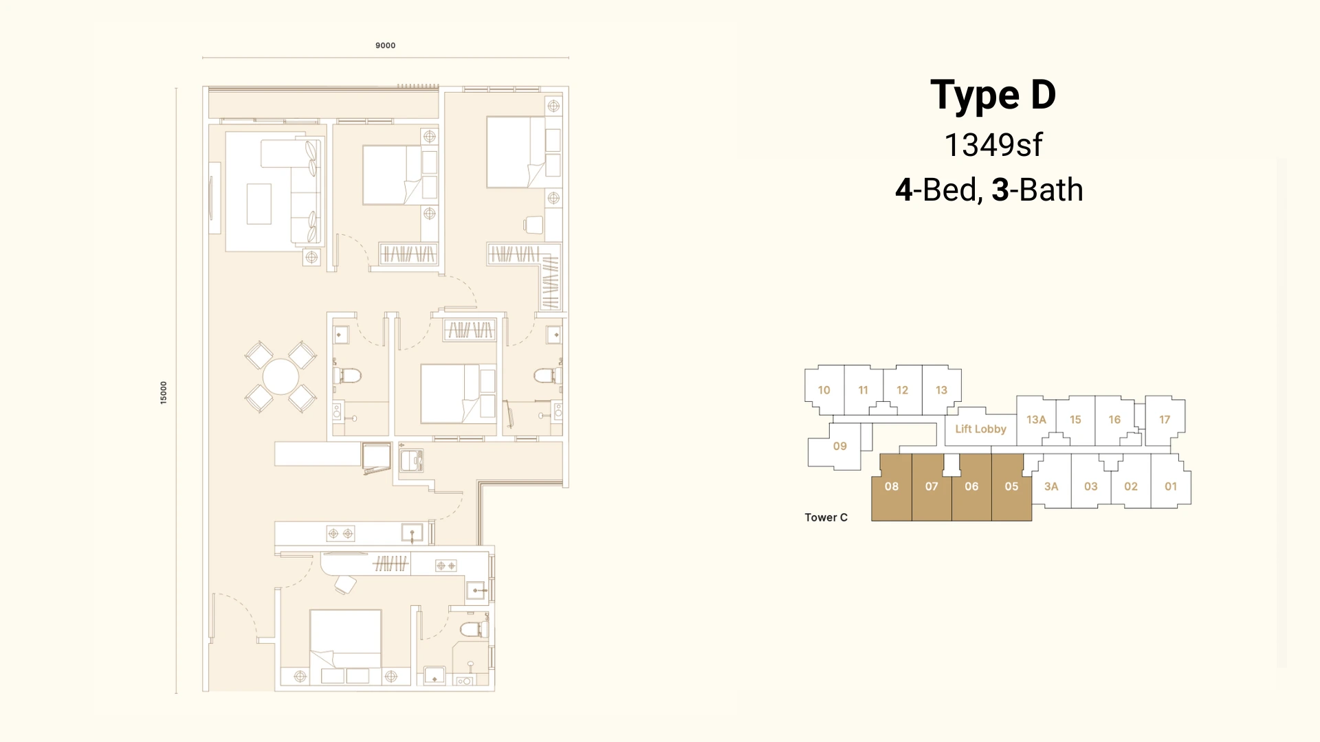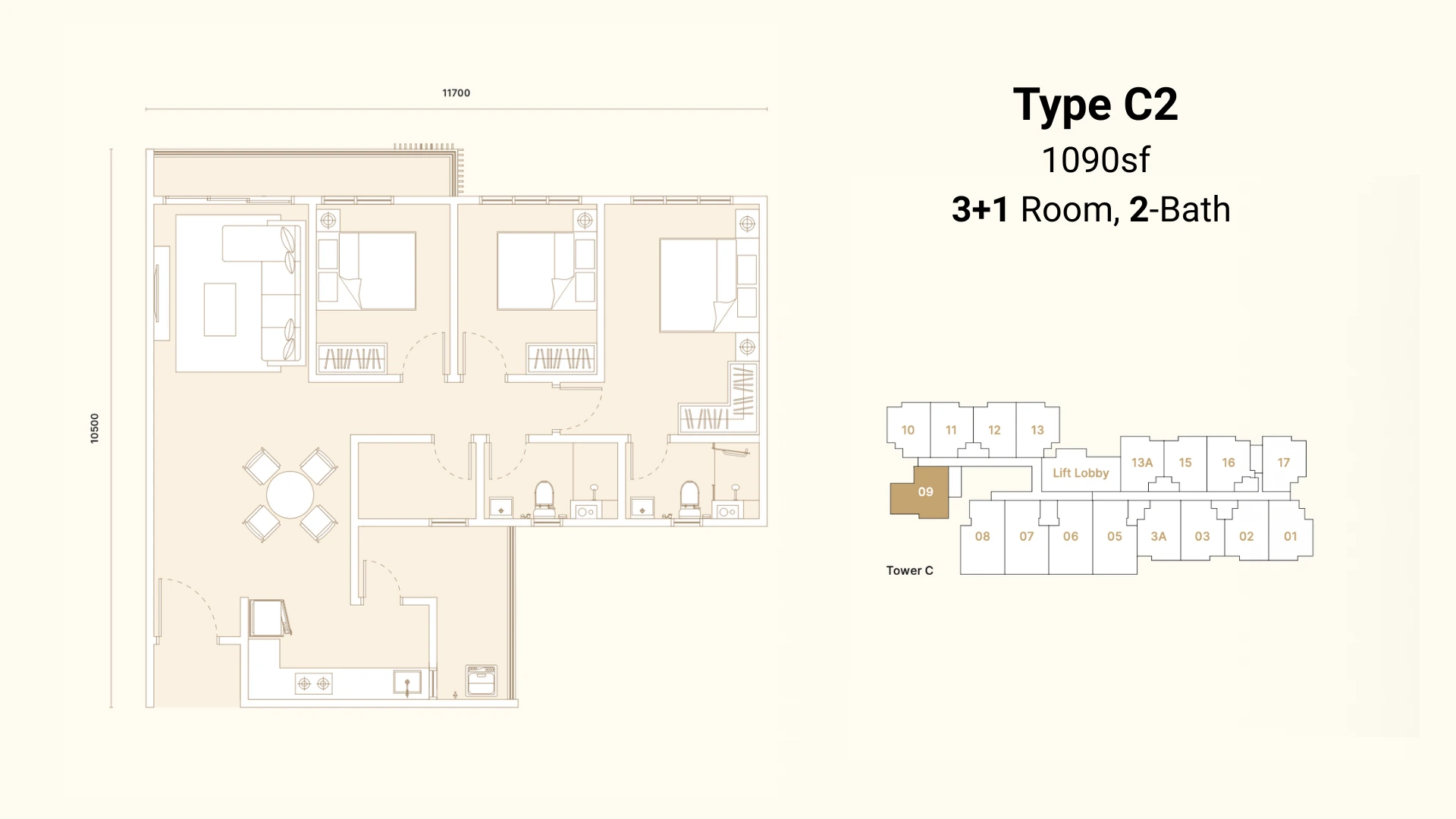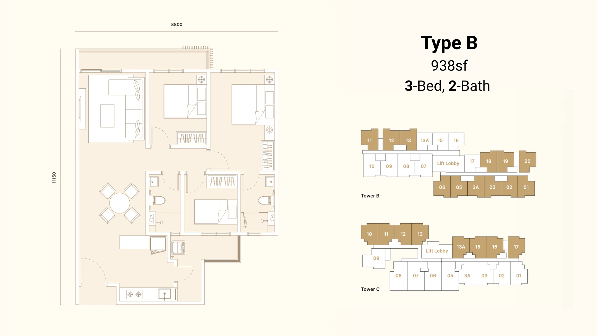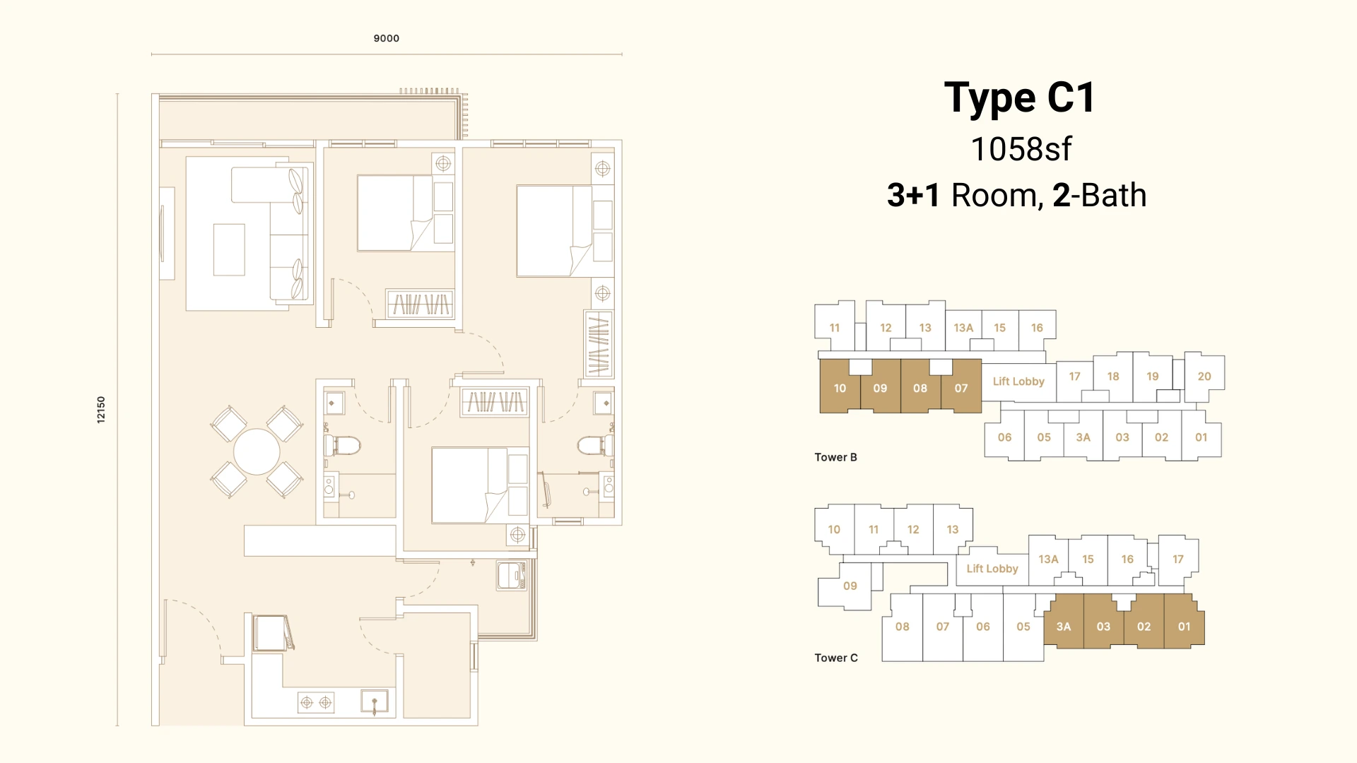 3+1R 2B | 938 - 1,090 SF. 4R 3B | 1,349 SF.